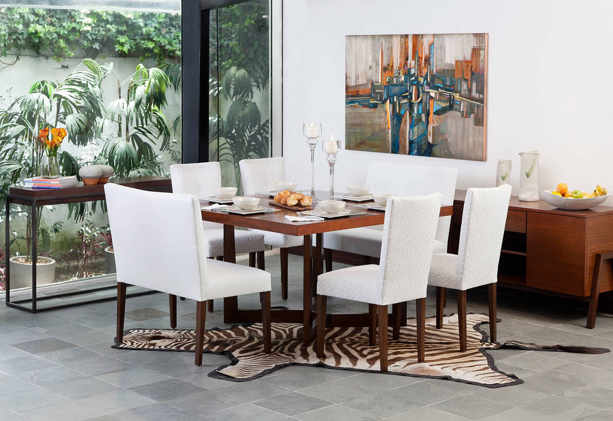 Silla de comedor doble, tapizada, con patas de madera solida de Seike en acabado Humo. Ideal para mesas cuadradas o para cabecera de mesas rectangulares. Personaliza tu banca de comedor con mas de 20 textiles importados de alta calidad y resistencia. Puedes solicitar gratuitamente muestras de telas para tomar la mejor decisión en el siguiente link: http://loftbystudionoa.com/muestraGratis