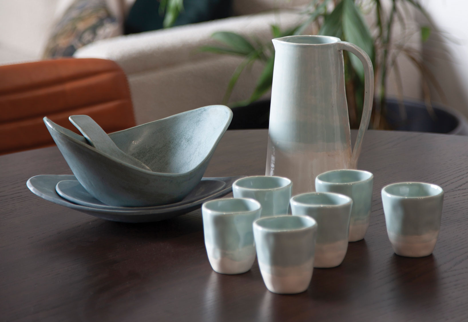 Set de 6 vasos Ela. Color sky al interior y degrade al exterior. Material gres color blanco.